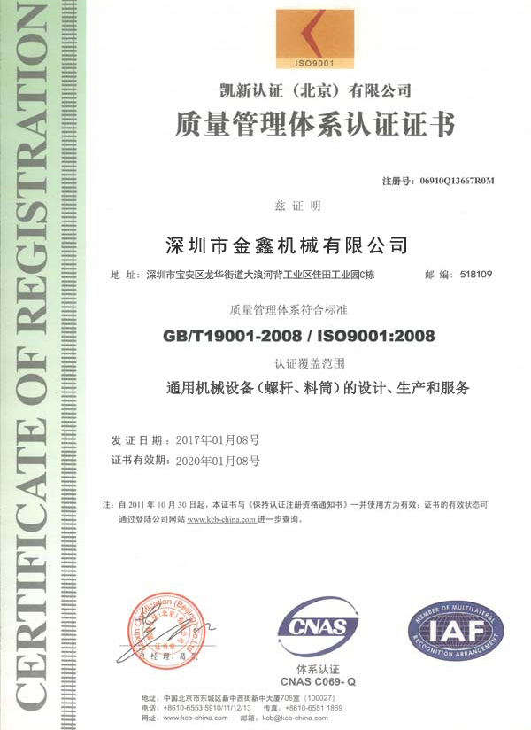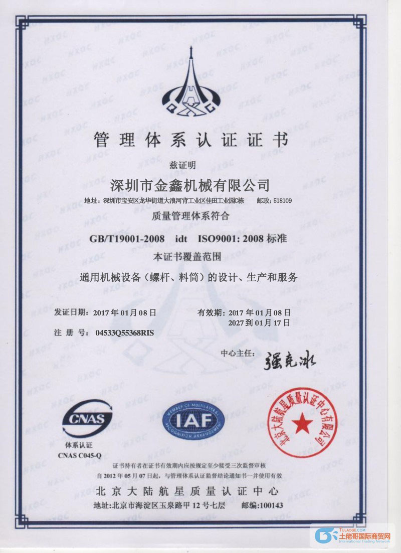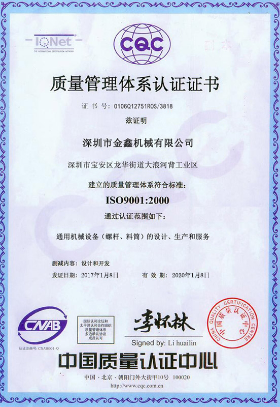 質(zhì)量管理體系認(rèn)證證書(中國(guó))
